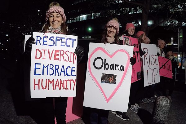 Americans march in Tokyo on the eve of Donald Trump’s inauguration as US President to call for tolerance, decency, and open society.
