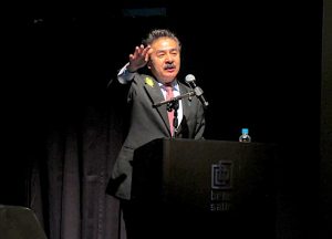 —From his Twitter feed: Vice-Foreign Minister Masahisa Sato, speaking at JCPAC conference in front of comrades such as Steve Bannon, Naoki Hyakuta, and Toshio Tamogami, tries out a new pose. Any wonder the Abe Foreign Ministry has gone hardline on every international issue?