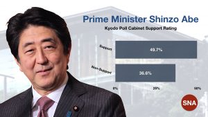 —Kyodo News poll finds that while plurality opposes most of the specific policies advocated by the Abe administration, almost half of the nation supports the current Cabinet.