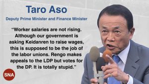 —The political strategies of the Japanese Trade Union Confederation (Rengo) are so dumb and convoluted that even Deputy Prime Minister Taro Aso can’t help but be stupefied.