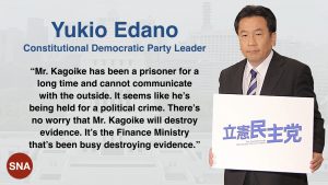 —Has Moritomo Gakuen’s Yasunori Kagoike effectively become a Political Prisoner of the Abe regime? Japan’s top opposition leader now joins those who believe that he is.