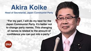 —Akira Koike disparages centrist politicians for their ongoing musical chairs, changing political parties and political party names. As the Number Two man of Japan’s oldest political party, which is the only contemporary party formed in the prewar era, he clearly feels some pride.