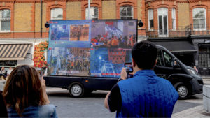 After around an hour the van moved onto the next location, Camden, keeping activists updated through a chat on the encrypted messaging service, Telegram (which has proved popular among Hong Kong protesters for privacy reasons) and on Twitter. While it was in transit to the second location, the digivan drove through the busy streets of Central London, and the spectacle attracted many shoppers and tourists, who snapped photographs on their mobile phones and pointed it out to friends and family.