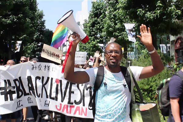 Protesters march as part of Black Lives Matter movement in Tokyo on August 6, 2016.
