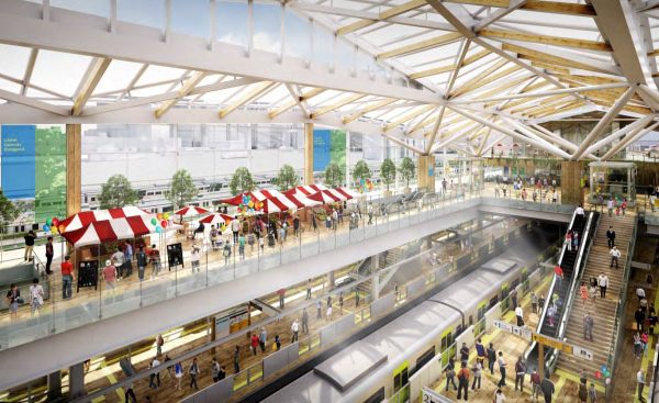 JR East is constructing a new train station on the Yamanote Line between Shinagawa and Tamachi. The station will connect to the Keihin-Tohoku Line, Yamanote Line, and the Shinkansen.